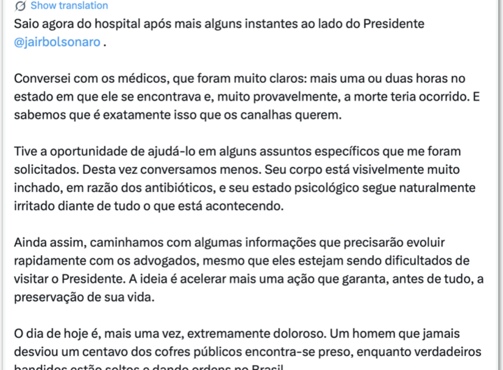 Carlos diz que Bolsonaro está “inchado e irritado” na UTI 3 min read Geral Carlos diz que Bolsonaro está “inchado e irritado” na UTI RealRadioTvBrasil março 15, 2026