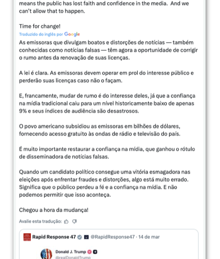 Aliado de Trump ameaça tirar licenças de TVs por cobertura do Irã 2 min read Geral Aliado de Trump ameaça tirar licenças de TVs por cobertura do Irã RealRadioTvBrasil março 15, 2026