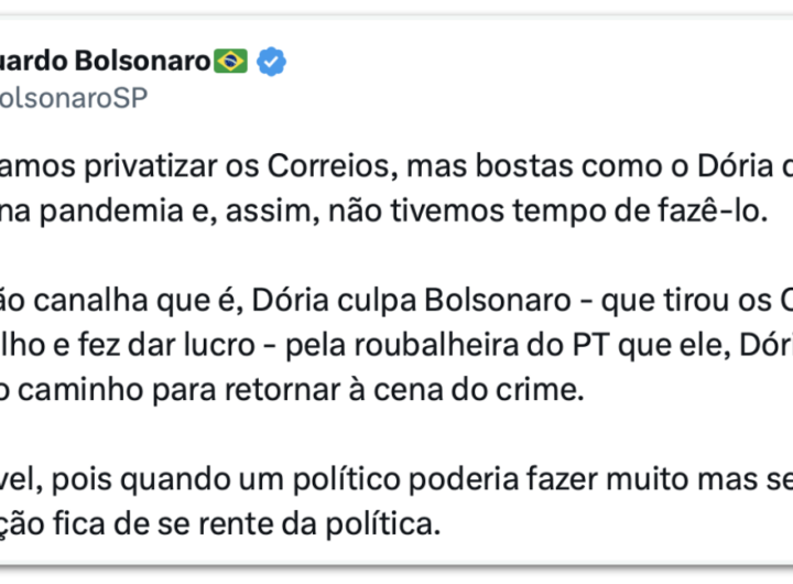 Eduardo chama Doria de “bosta” e diz que ele abriu caminho para PT 2 min read Geral Eduardo chama Doria de “bosta” e diz que ele abriu caminho para PT RealRadioTvBrasil março 31, 2026