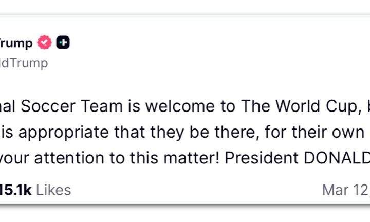 Trump diz que Irã é bem-vindo na Copa, mas não deveria ir por segurança 2 min read Geral Trump diz que Irã é bem-vindo na Copa, mas não deveria ir por segurança RealRadioTvBrasil março 12, 2026