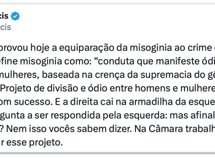 Direita quer derrubar projeto sobre misoginia na Câmara 2 min read Geral Direita quer derrubar projeto sobre misoginia na Câmara RealRadioTvBrasil março 25, 2026