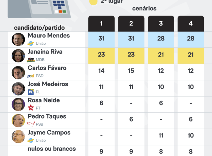 Mauro Mendes e Janaína Riva lideram pesquisa para o Senado em MT 1 min read Geral Mauro Mendes e Janaína Riva lideram pesquisa para o Senado em MT RealRadioTvBrasil março 24, 2026
