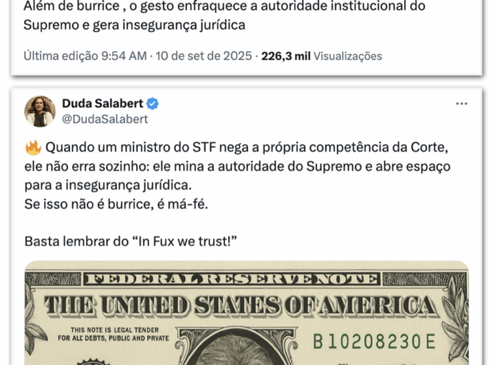 O ministro do STF (Supremo Tribunal Federal) Luiz Fux afirmou nesta 4ª feira (10.set.2025) que manifestações críticas aos poderes constitucionais (que...