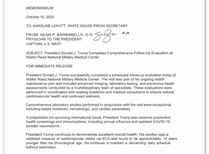 Trump faz check-up e é avaliado com “idade cardíaca de 65 anos” 3 min read Geral Trump faz check-up e é avaliado com “idade cardíaca de 65 anos” RealRadioTvBrasil outubro 11, 2025