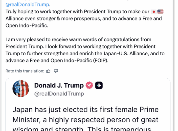 Futura primeira-ministra do Japão agradece a Trump por apoio 3 min read Geral Futura primeira-ministra do Japão agradece a Trump por apoio RealRadioTvBrasil outubro 7, 2025