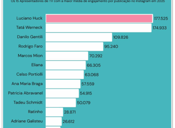 Huck lidera ranking de engajamento de apresentadores de TV 2 min read Geral Huck lidera ranking de engajamento de apresentadores de TV RealRadioTvBrasil outubro 3, 2025