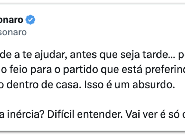 Carlos cobra Valdemar por “inércia” em meio a atritos no PL 1 min read bolsonarismo Brasil Carlos Bolsonaro Eduardo Bolsonaro Eleicoes 2026 Flávio Bolsonaro Geral Jair Bolsonaro Jorge Seif Nikolas Ferreira Partido Liberal PL Poder Eleições Poder Partidos Políticos redes sociais Valdemar Costa Neto Carlos cobra Valdemar por “inércia” em meio a atritos no PL RealRadioTvBrasil abril 11, 2026