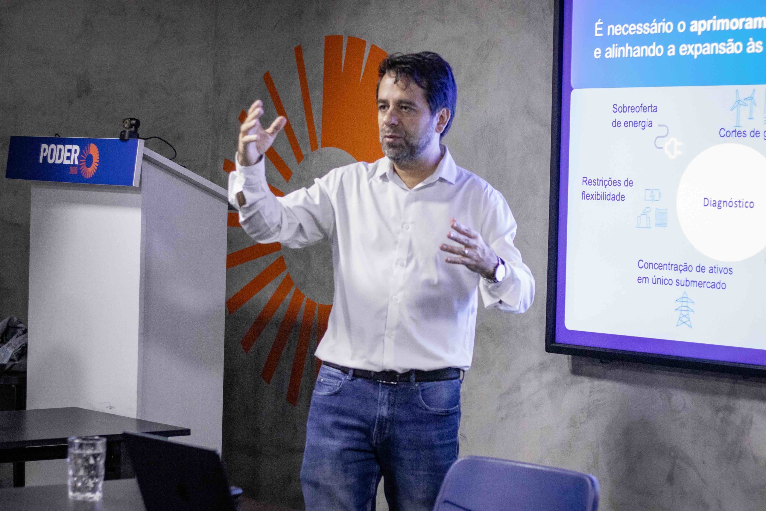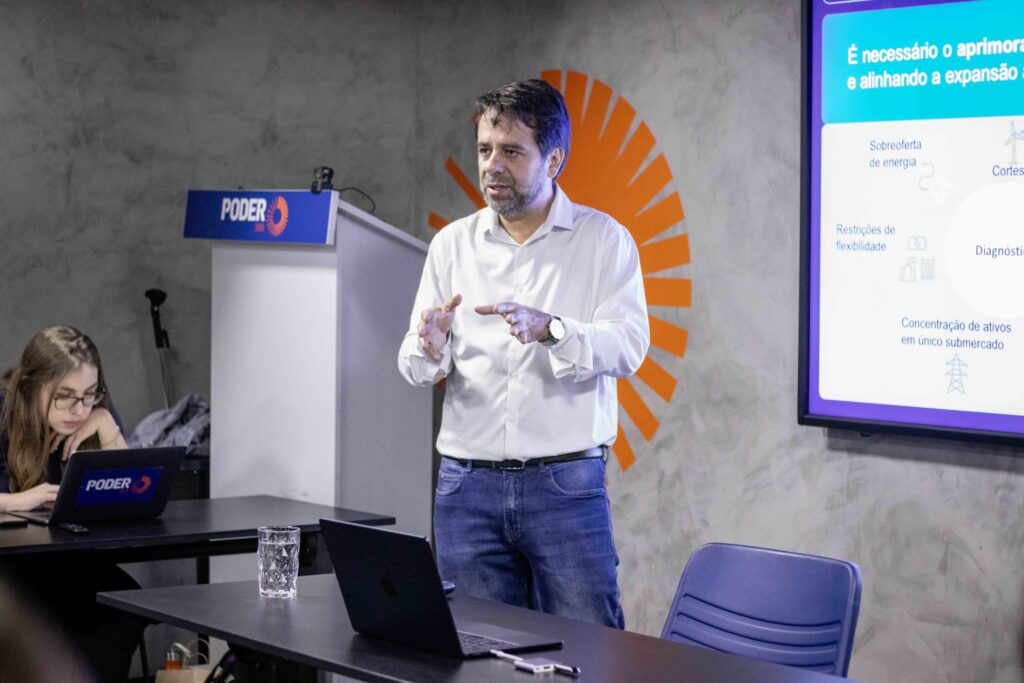 O diretor de Relações Institucionais da Axia Energia, Luiz Laércio, ministrou palestra à 2ª Turma do Programa de Trainees em Jornalismo do Poder360 nesta 6ª feira (10.abr.2026), na sede do jornal digital, em Brasília.