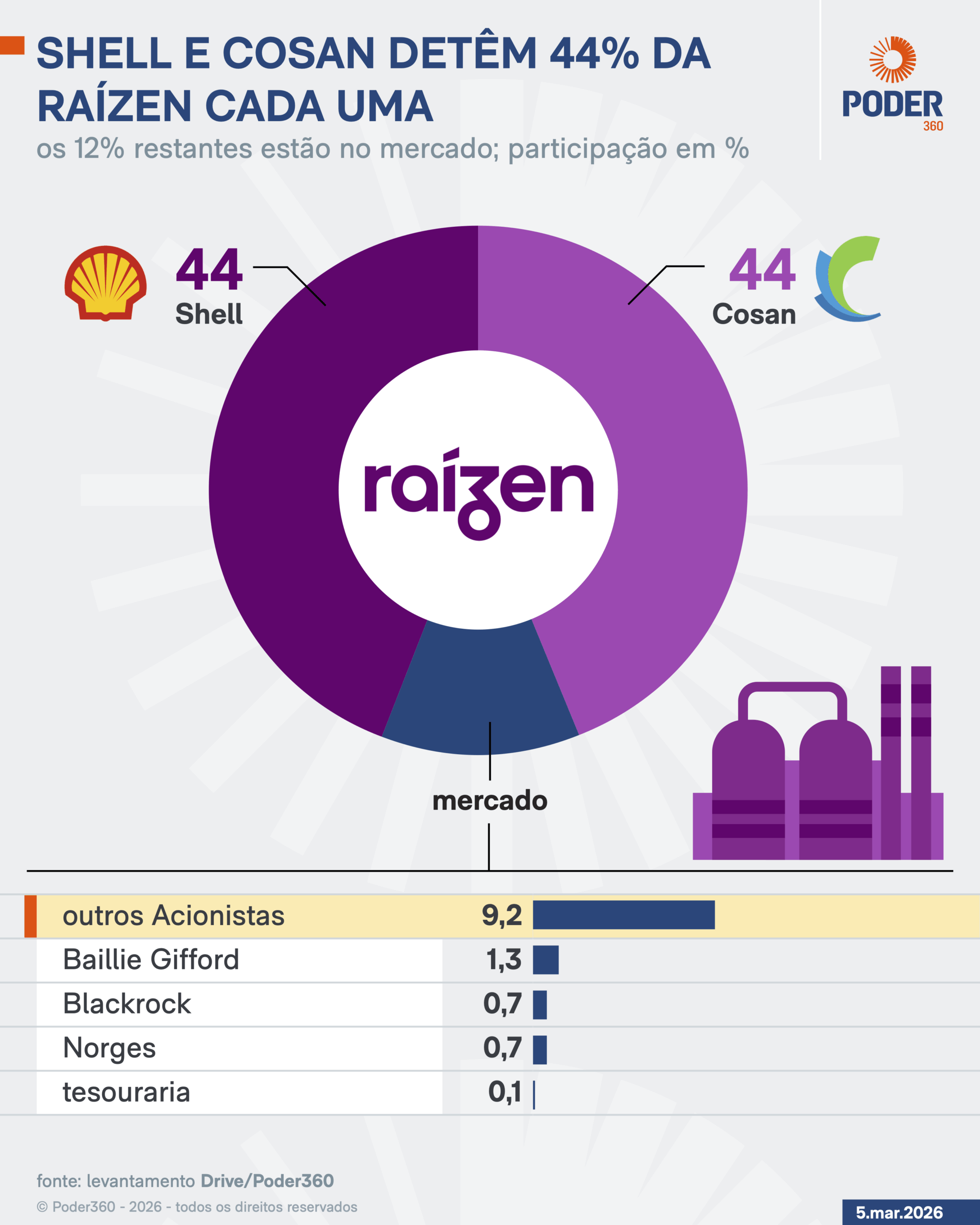 Como parte das negociações com credores, os acionistas indicaram a possibilidade de aportar aproximadamente R$ 4 bilhões na companhia. A Shell pode contribuir com cerca de R$ 3,5 bilhões, enquanto um veículo ligado ao empresário Rubens Ometto, controlador da Cosan, pode aportar R$ 500 milhões.
