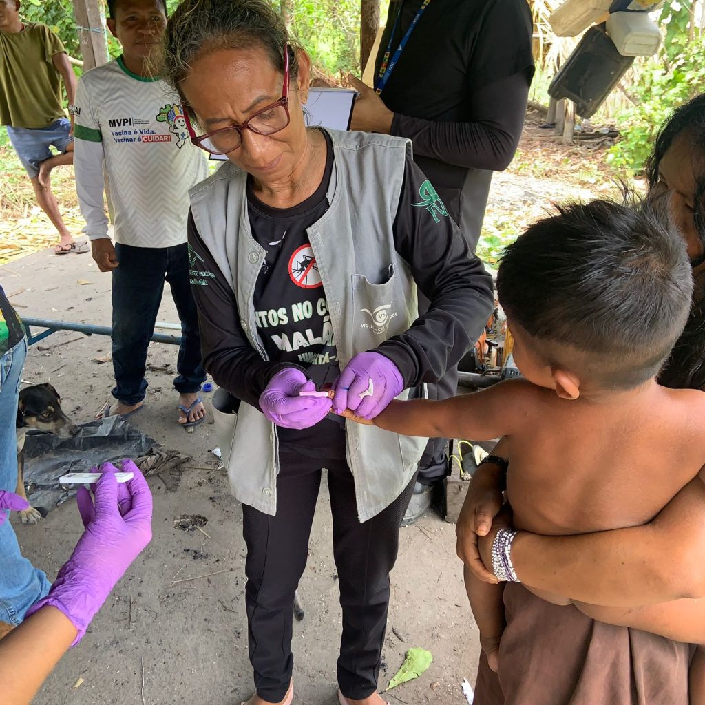 A FVS-RCP também reforçou o apoio no enfrentamento à malária entre indígenas de recente contato da etnia Pirahã, no Polo Base Piquiá e em outras aldeias vinculadas ao Dsei Porto Velho. As ações priorizaram a busca ativa de casos, a ampliação do diagnóstico e a introdução do novo tratamento como estratégia para conter a transmissão.