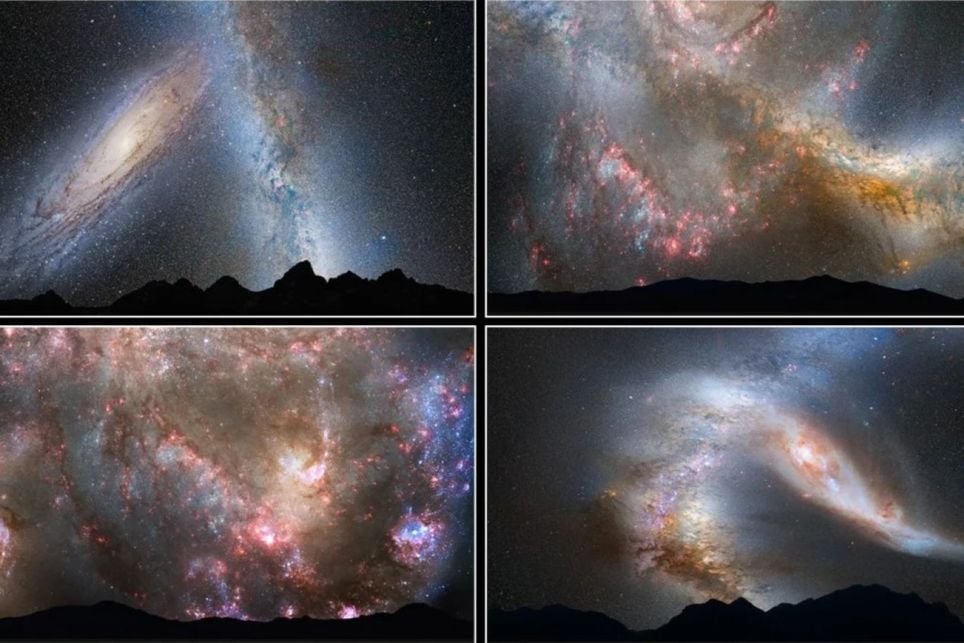 Daqui a 3,75 bilhões de anos, Andrômeda já terá preenchido nosso céu noturno, e sua imensa força de maré começará a distorcer visivelmente a Via Láctea. Um pouco depois, daqui a 3,85 bilhões de anos, o céu noturno se iluminará com uma intensa e caótica formação estelar.
