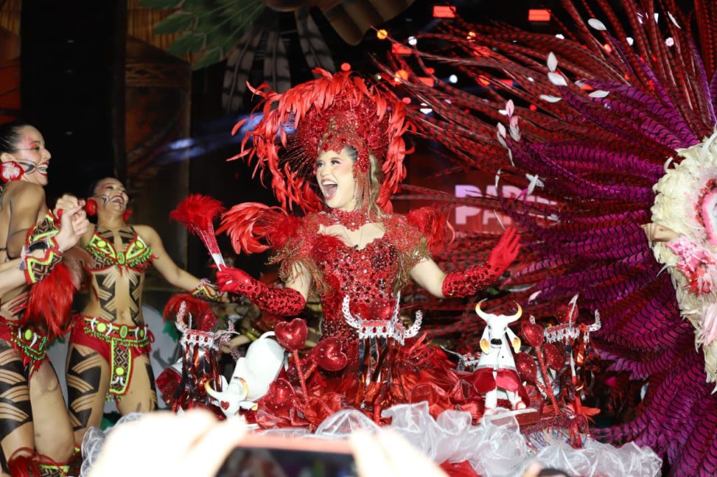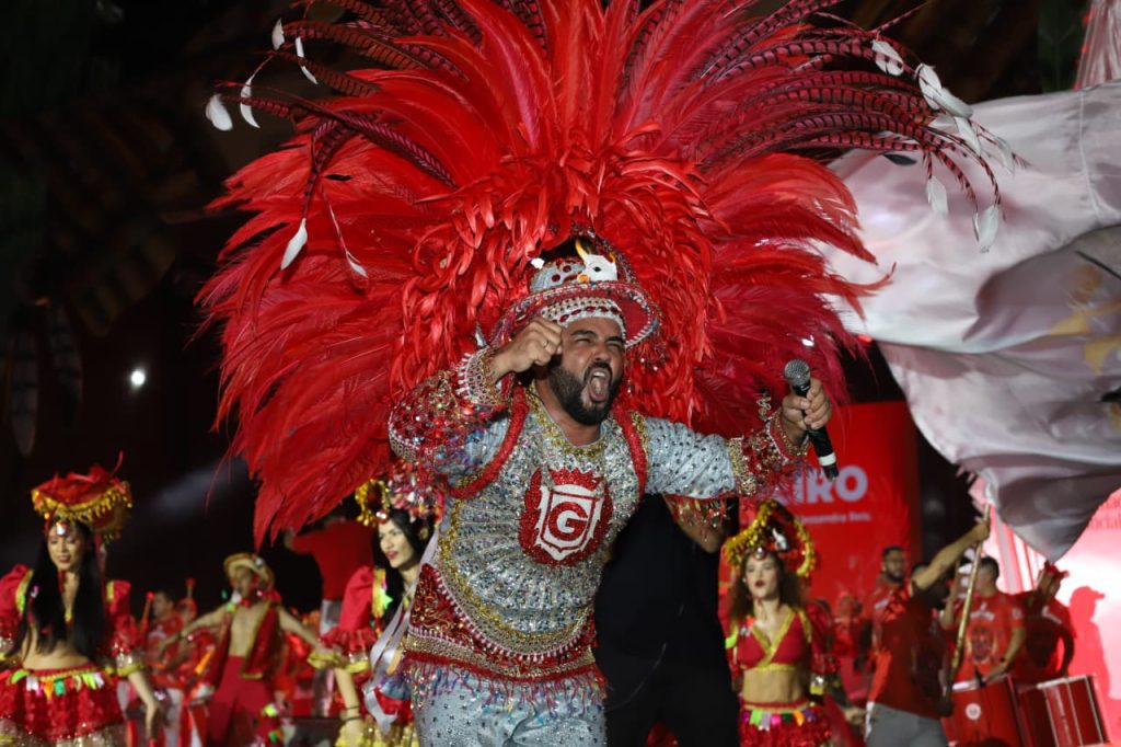 Uma multidão avermelhada lotou o Sambódromo de Manaus, na noite de sábado (18/04), para o lançamento do álbum “Parintins: Portal do Encantamento”, do Boi Garantido. Com a presença dos itens oficiais e o povo cantando as novas toadas, o Ensaio dos Bumbás, promovido pelo Movimento Amigos do Garantido (MAG), com o apoio do Governo do Amazonas, por meio da Secretaria de Estado de Cultura e Economia Criativa, foi um sucesso.