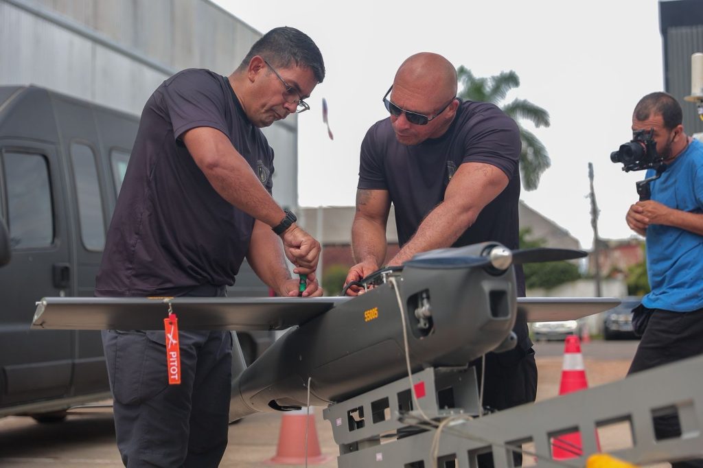 Outro destaque é a incorporação de aeronaves remotamente pilotadas, veículos chamados de Vants Harpia, que passam a reforçar as operações policiais e o monitoramento de atividades ilícitas em tempo real. Equipados com câmeras de alta precisão, visão térmica e capacidade de monitoramento contínuo, os equipamentos ampliam a atuação das forças em áreas de difícil acesso, como rios e regiões de mata.