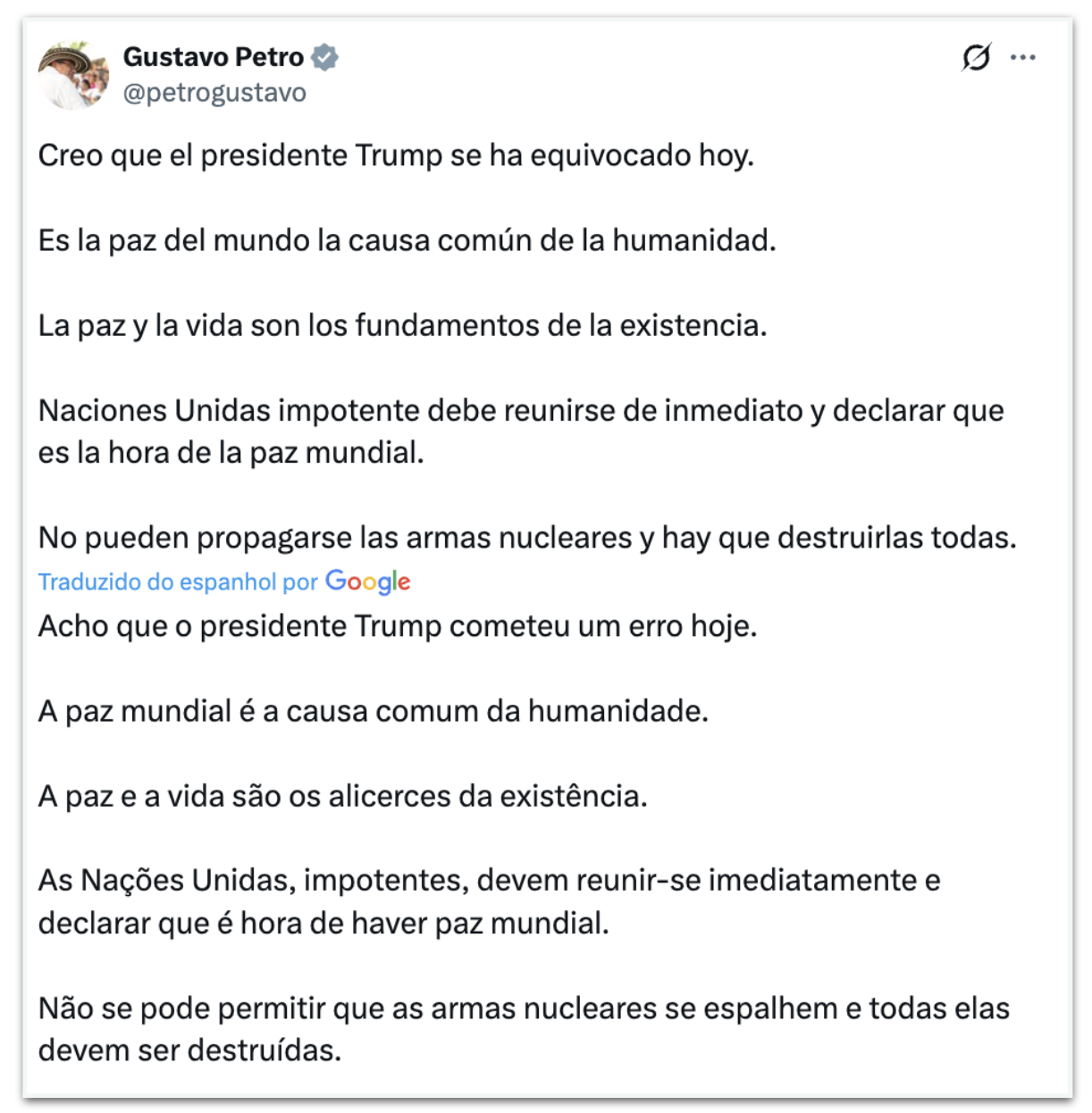 - Gustavo Petro, presidente da Colômbia
