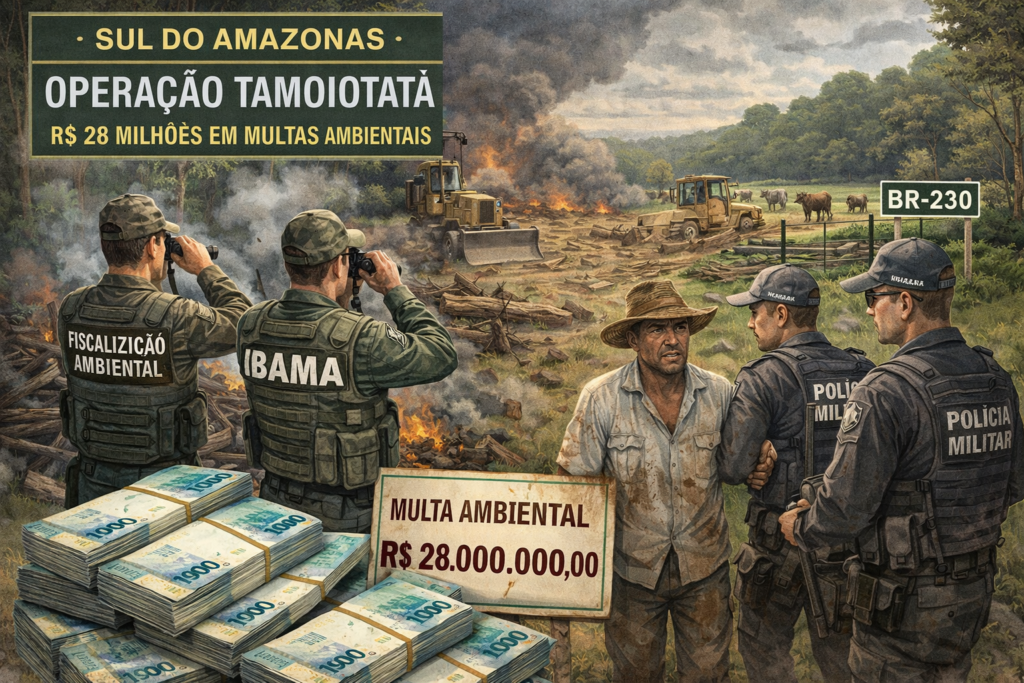 MANAUS – 16/03/2026 – R$ 28 milhões em multas ambientais aplicadas. Este é o resultado das primeiras etapas da Operação Tamoiotatá 6, realizada em vários municípios da região sul do Amazonas.