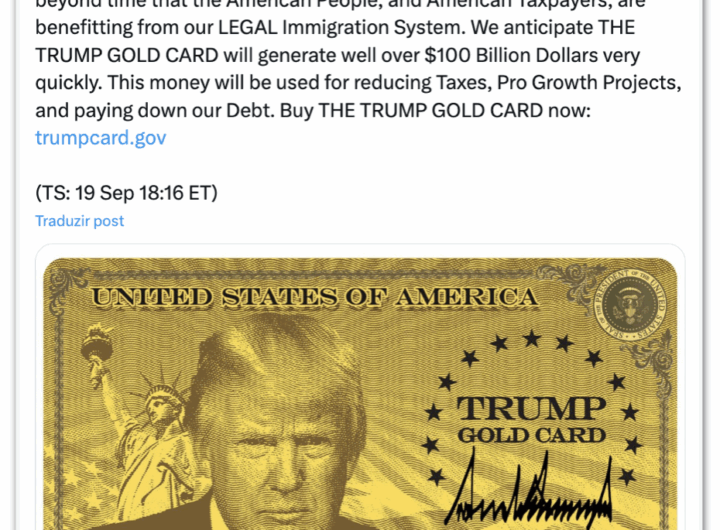 Trump assina decreto que cria o “gold card” Geral Trump assina decreto que cria o “gold card” RealRadioTvBrasil setembro 19, 2025