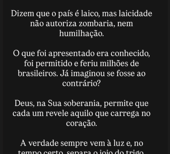 “Escárnio que expõe a fé cristã”, diz Michelle sobre desfile pró-Lula Geral “Escárnio que expõe a fé cristã”, diz Michelle sobre desfile pró-Lula RealRadioTvBrasil fevereiro 16, 2026