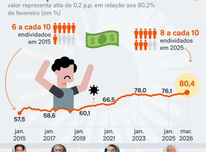 Endividamento das famílias vai a 80,4% em março e bate recorde 3 min read Geral Endividamento das famílias vai a 80,4% em março e bate recorde RealRadioTvBrasil abril 7, 2026