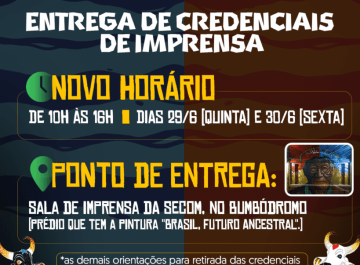 Governo do Amazonas inicia entrega de credenciais de imprensa para cobertura do 56º Festival Folclórico de Parintins 2 min read Geral Governo do Amazonas inicia entrega de credenciais de imprensa para cobertura do 56º Festival Folclórico de Parintins RealRadioTvBrasil junho 28, 2023