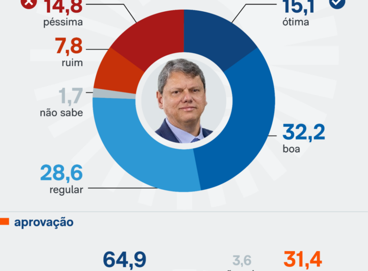 Tarcísio é aprovado por 64,9% em São Paulo, diz pesquisa 2 min read Geral Tarcísio é aprovado por 64,9% em São Paulo, diz pesquisa RealRadioTvBrasil abril 16, 2026