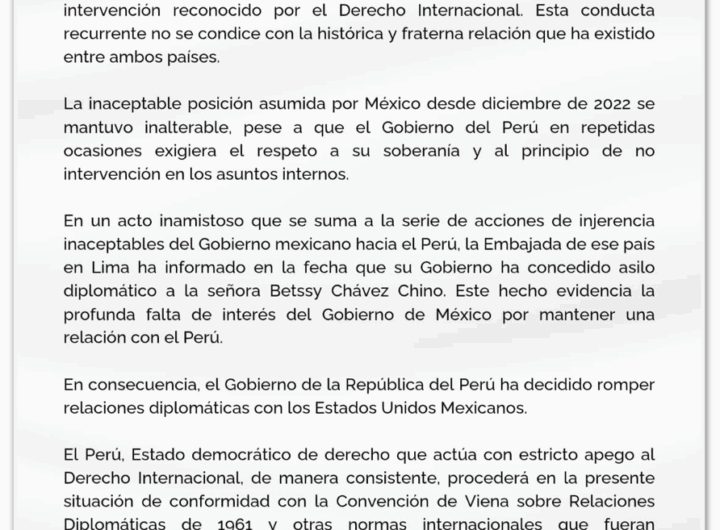 Peru rompe relações com o México após concessão de asilo a ex-premiê 3 min read Geral Peru rompe relações com o México após concessão de asilo a ex-premiê RealRadioTvBrasil novembro 4, 2025