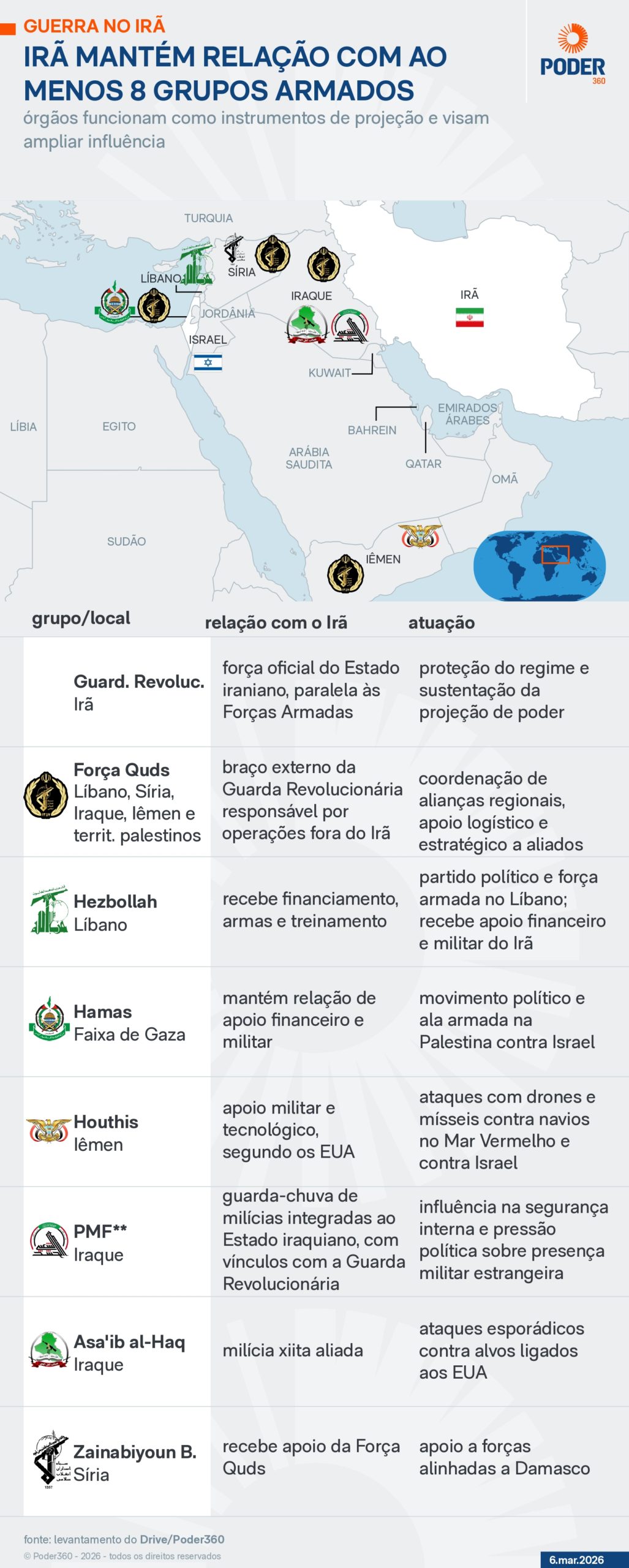 O Irã mantém apoio financeiro e logístico a aliados no Oriente Médio, como o Hezbollah no Líbano e milícias pró-governo na Síria e no Iraque. Esse financiamento absorve recursos significativos, tanto econômicos quanto políticos, e é visto como um trade-off –troca– entre segurança externa e bem-estar doméstico.