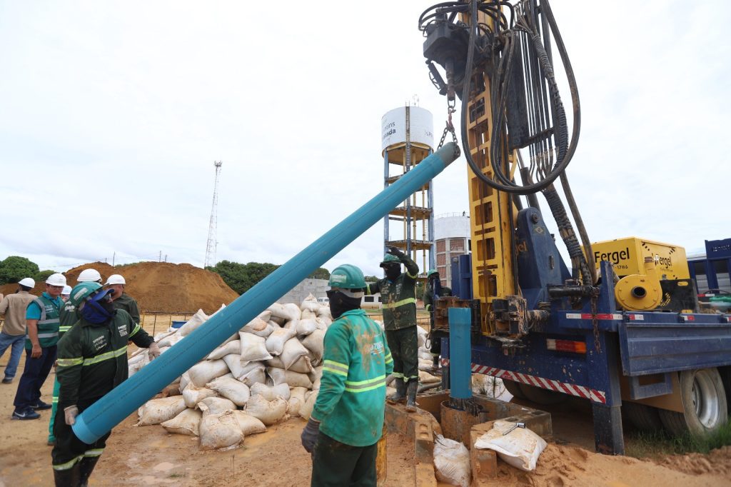 Tem ainda o reservatório elevado, com capacidade de 400 metros cúbicos, totalizando 1.800 metros cúbicos – o equivalente a 1,8 milhão de litros de água. O Centro de Reservação dispõe de seis poços perfurados. Desses, cinco estão em operação desde 26 de junho de 2025, contribuindo para o reforço no fornecimento de água. O sexto poço foi concluído recentemente e encontra-se em fase de testes, paralelamente à finalização dos serviços civis e controle de vazão.