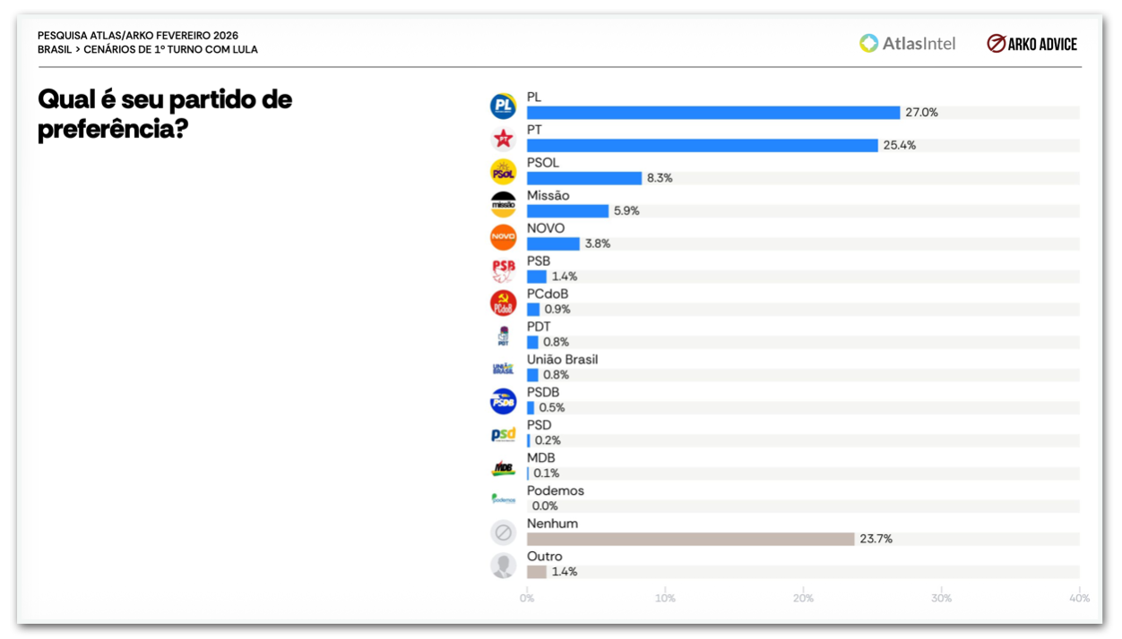 A AtlasIntel perguntou: “Qual é seu partido de preferência?”. Eis como os entrevistados responderam: