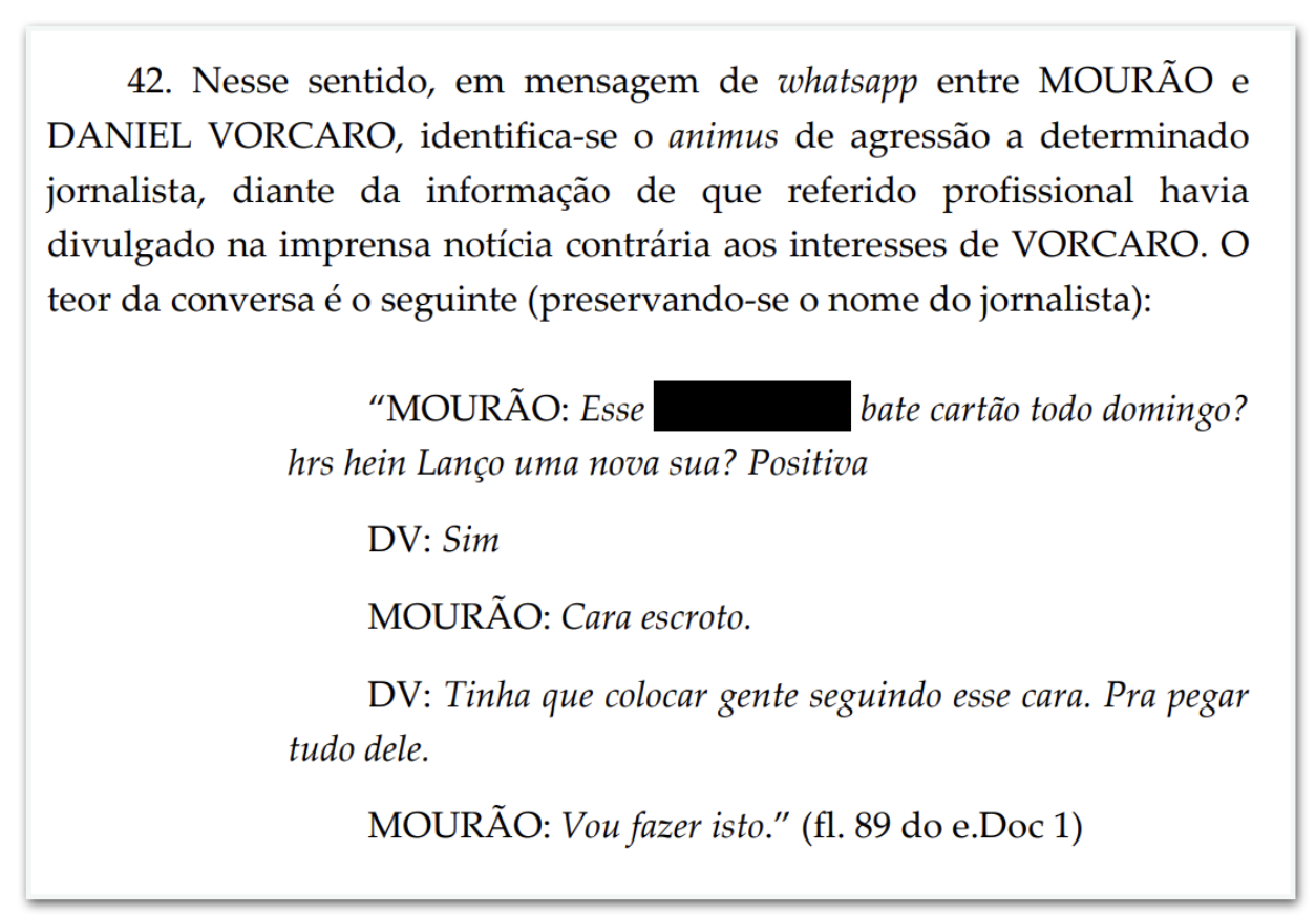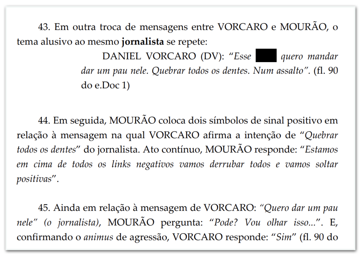 - monitoramento de jornalista: “Tinha que colocar gente seguindo esse cara. Pra pegar tudo dele.”