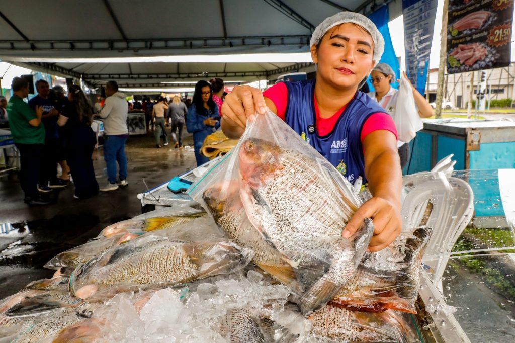 O Feirão do Pescado – Edição Semana Santa, promovido pelo Governo do Estado, por meio da Agência de Desenvolvimento Sustentável do Amazonas (ADS) iniciou, nesta quarta-feira (1º/04), e seguirá até sexta-feira (03/04), na Arena Poliesportiva Amadeu Teixeira, bairro Flores, zona centro-sul, e no Centro Cultural dos Povos da Amazônia, zona sul, com a oferta de pescado direto de produtores rurais da capital e do interior do estado. A expectativa é comercializar, em torno de 90 toneladas de peixe, movimentando um montante de R$ 2,4 milhões.