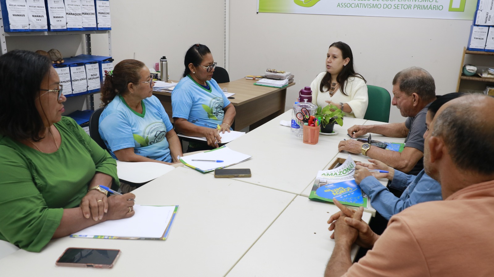 A Secretaria de Estado de Produção Rural (Sepror), por meio do Núcleo de Cooperativismo e Associativismo do Setor Primário (Nucap), realizou durante dois dias, quinta-feira (19/02) e nesta sexta-feira (20/02), oficina de Práticas de Atas de Assembleia Geral Ordinária (AGO) e Assembleia Geral Extraordinária (AGE), capacitando oito membros da diretoria da Associação dos Piscicultores e Agricultores Familiares (APAF), localizada no Ramal 14 do Puraquequara, zona rural de Manaus.