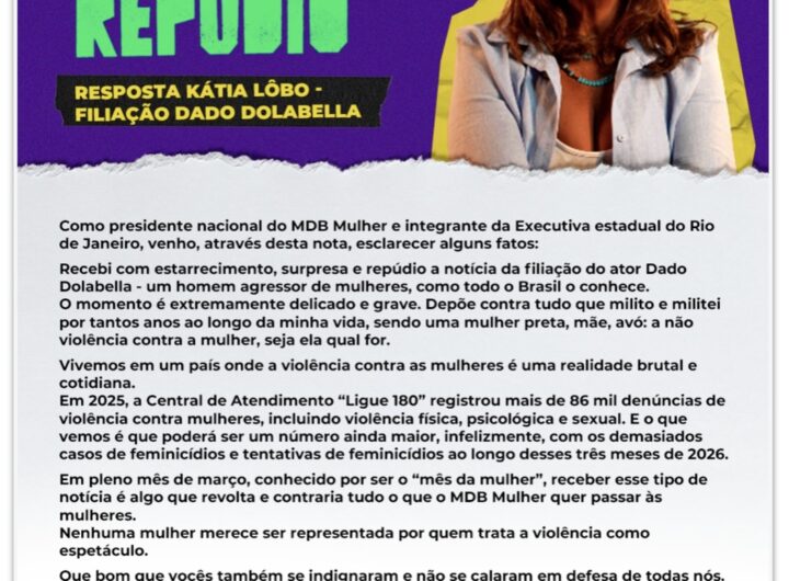 MDB Mulher repudia filiação de Dado Dolabella ao partido 3 min read Geral MDB Mulher repudia filiação de Dado Dolabella ao partido RealRadioTvBrasil março 6, 2026