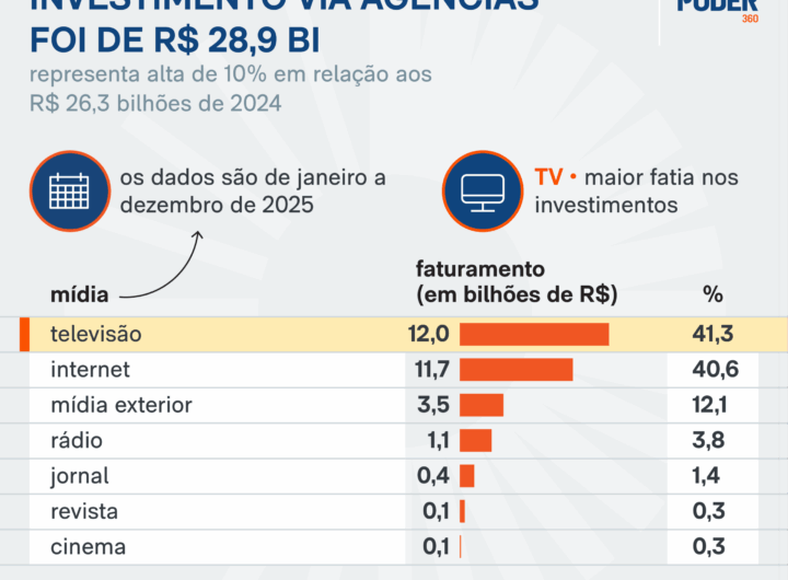 Investimento em mídia via agências chega a R$ 28,9 bi em 2025 1 min read Geral Investimento em mídia via agências chega a R$ 28,9 bi em 2025 RealRadioTvBrasil março 5, 2026