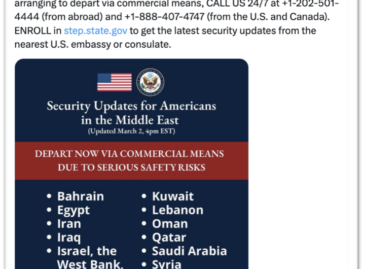 EUA pedem que norte-americanos deixem 14 países do Oriente Médio 4 min read Geral EUA pedem que norte-americanos deixem 14 países do Oriente Médio RealRadioTvBrasil março 3, 2026