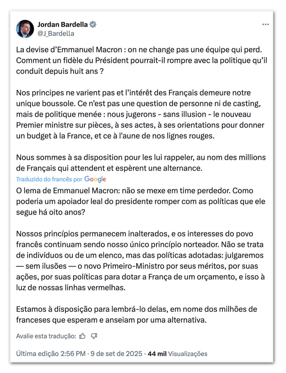 O presidente Emmanuel Macron (Renascimento, centro) nomeou Sébastien Lecornu (Renascimento, centro) como primeiro-ministro da França nesta 3ª feira (9.set.2025). O atual...