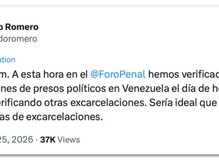 O presidente da ONG Foro Penal, Alfredo Romero, disse em seu perfil no X no domingo (25.jan.2026) que 104 presos políticos foram soltos na Venezuela. Segundo a organização, que monitora…