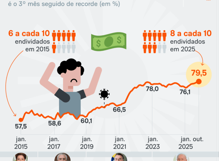 Endividamento subiu 18,6 pontos percentuais em 10 anos 4 min read Geral Endividamento subiu 18,6 pontos percentuais em 10 anos RealRadioTvBrasil novembro 9, 2025