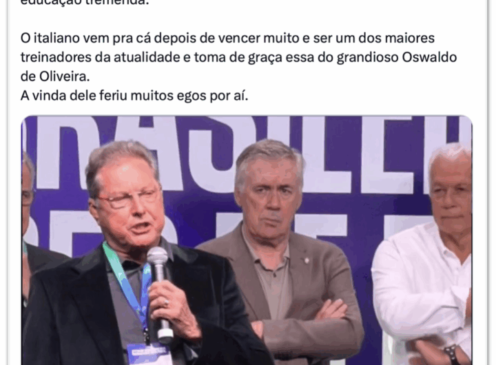 Internautas defendem Ancelotti após críticas de Leão e Oswaldo 1 min read Geral Internautas defendem Ancelotti após críticas de Leão e Oswaldo RealRadioTvBrasil novembro 5, 2025