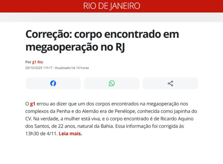 Mídia noticia morte de “Japinha do CV”, mas polícia nega informação 3 min read Geral Mídia noticia morte de “Japinha do CV”, mas polícia nega informação RealRadioTvBrasil novembro 5, 2025