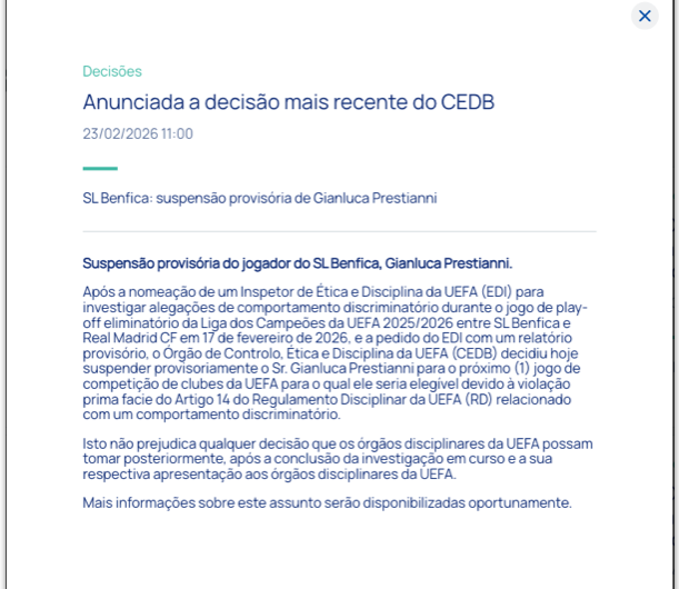 Uefa suspende Prestianni por acusação de racismo contra Vini Jr. 3 min read Geral Uefa suspende Prestianni por acusação de racismo contra Vini Jr. RealRadioTvBrasil fevereiro 23, 2026