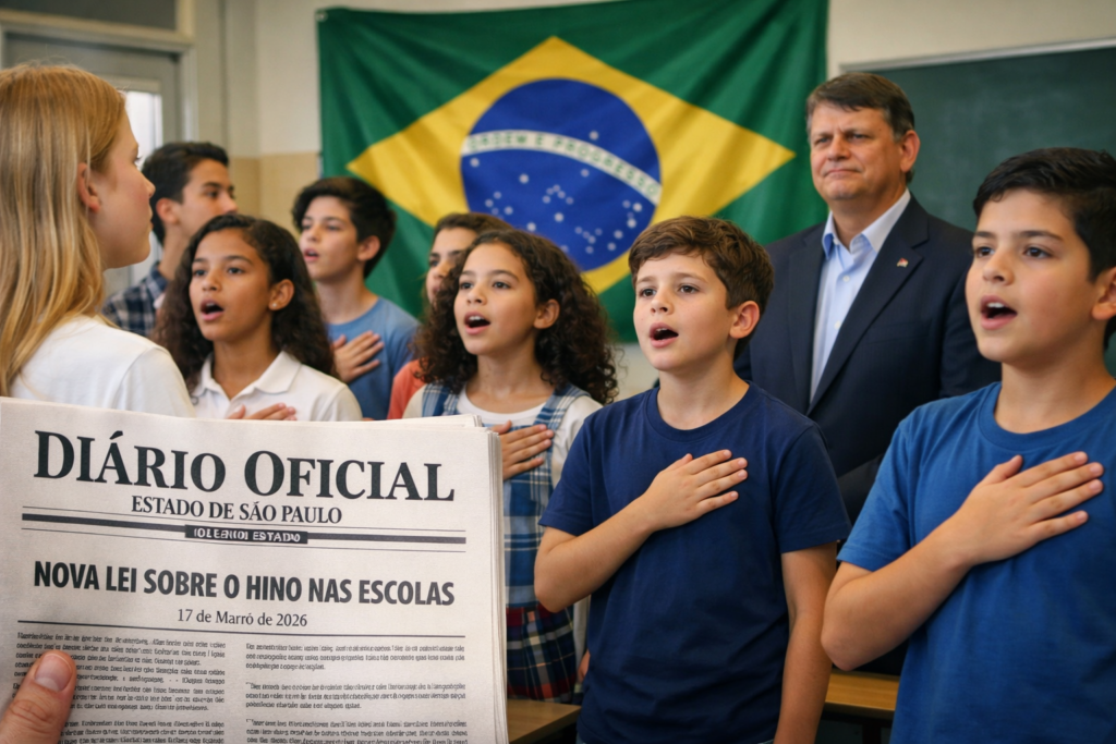 O governador de São Paulo, Tarcísio de Freitas (Republicanos), aprovou na 3ª feira (17.mar.2026) uma mudança na lei estadual que regula a execução do Hino Nacional em escolas públicas e privadas de ensino fundamental e médio. As novas regras foram publicadas no Diário Oficial do Estado e passam a valer imediatamente.