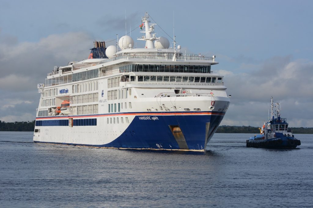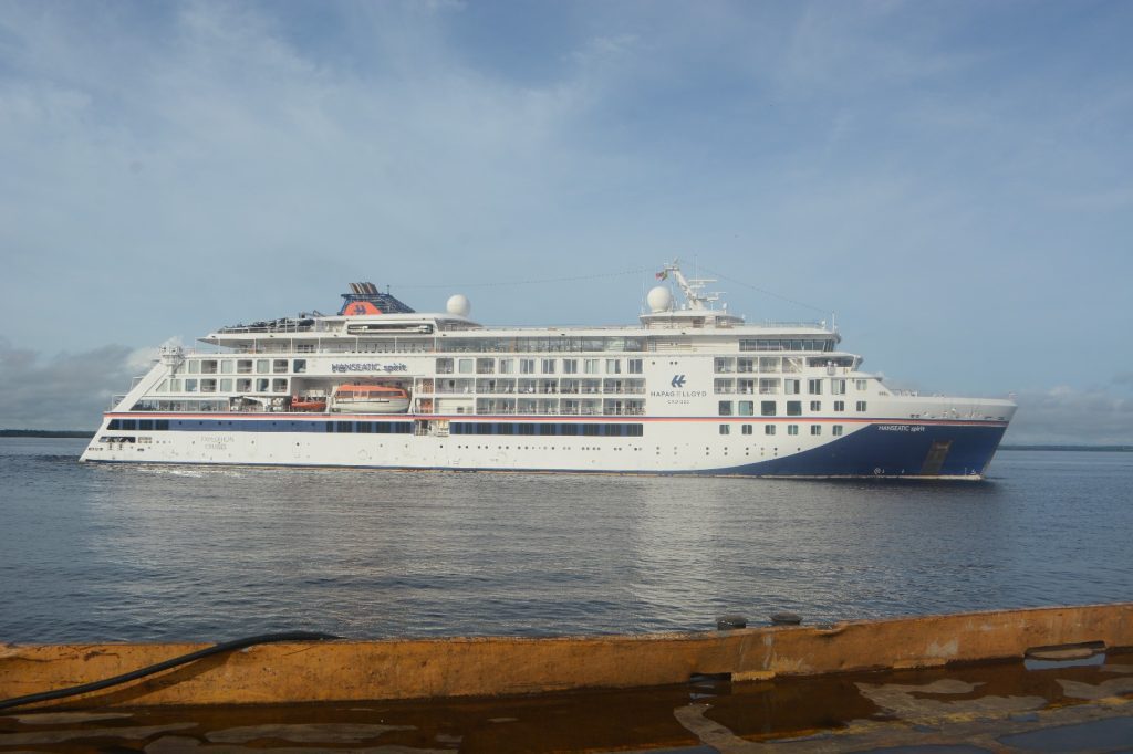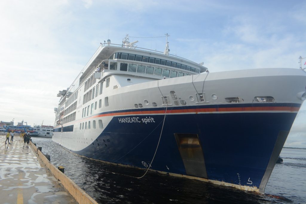 O Governo do Amazonas, por meio da Empresa Estadual de Turismo (Amazonastur), realizou, na manhã desta quarta-feira (08/04), o receptivo ao navio de luxo Hanseatic Spirit, no Porto de Manaus, Centro, zona sul de Manaus. A embarcação trouxe 200 passageiros e 175 tripulantes, totalizando 375 visitantes ao estado. O navio permanece ancorado até quinta-feira (09/04) e encerra a temporada de cruzeiros 2025/2026.