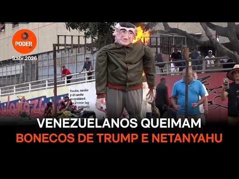 Venezuelanos queimaram no domingo (5.abr.2026) bonecos do presidente dos Estados Unidos, Donald Trump (Partido Republicano), e do primeiro-ministro de Israel, Benjamin Netanyahu (Likud, direita). O episódio se deu na capital Caracas, durante o tradicional ritual de Páscoa da Queima de Judas.